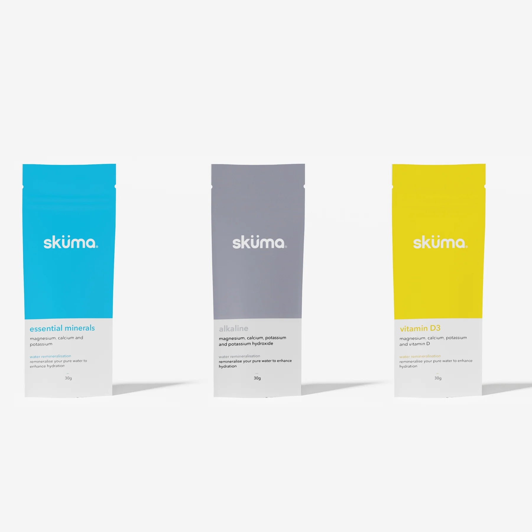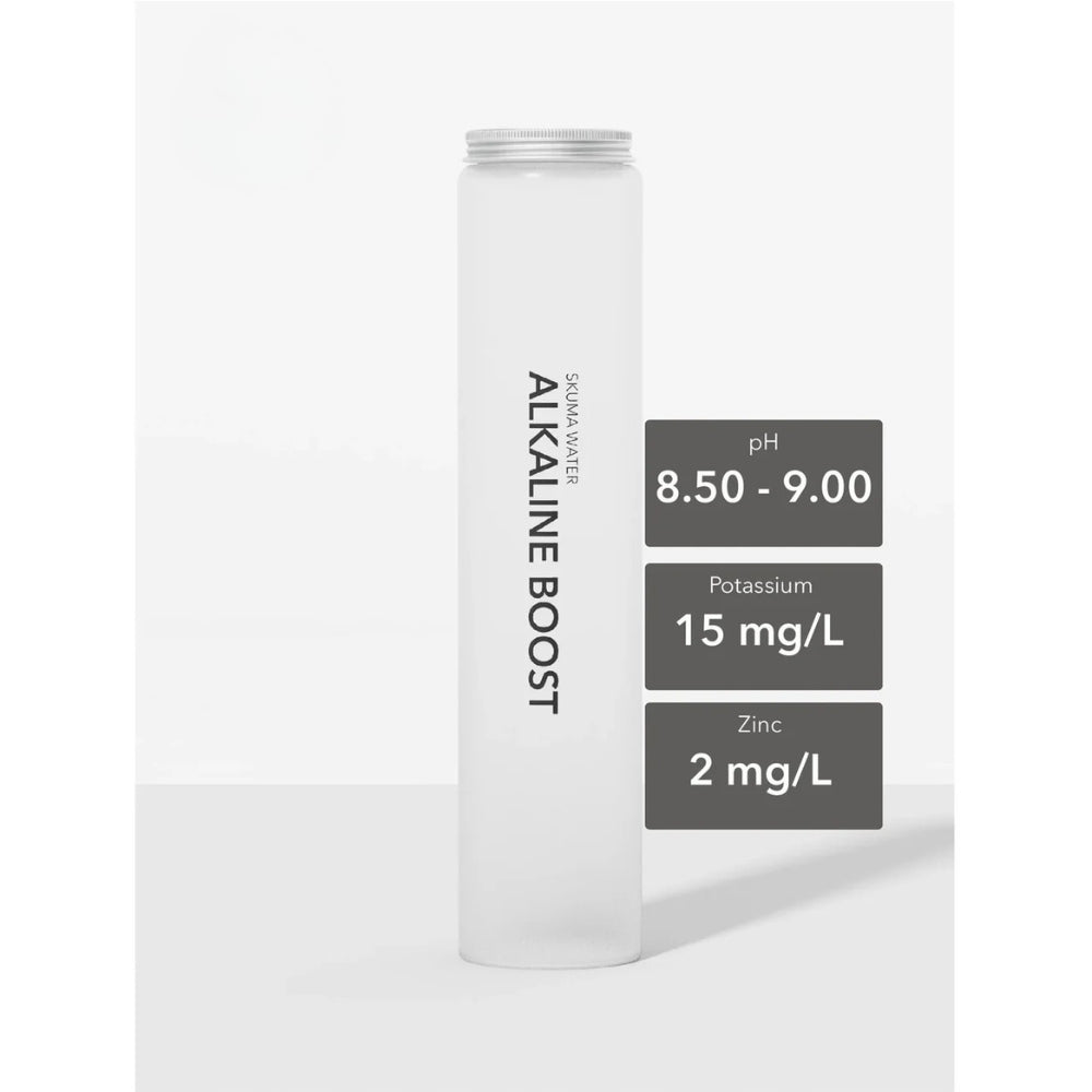Infusion™ Alkaline Boost transforme l’eau purifiée de Sküma en une eau douce, minérale et alcaline (pH 8,5 à 9,5), parfaite pour soutenir votre bien-être global. Sans arôme ni colorant, elle s’intègre à votre routine sans perturber vos habitudes.